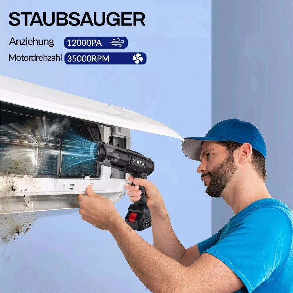 <-> 12000 Pa Suction Power Li-Ion Battery with 3000 mAh Capacity Removable HEPA Filter Compact and Lightweight Case Extra Long Operating Time of 30 Minutes