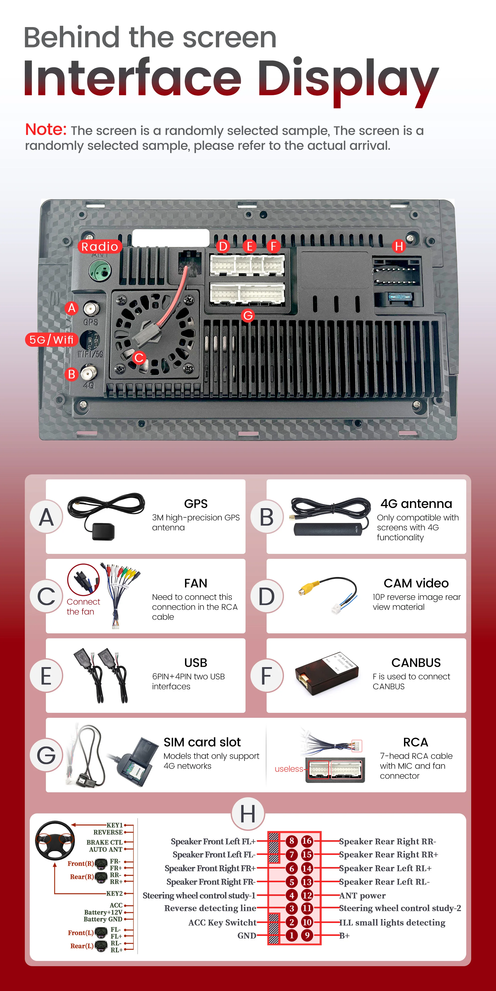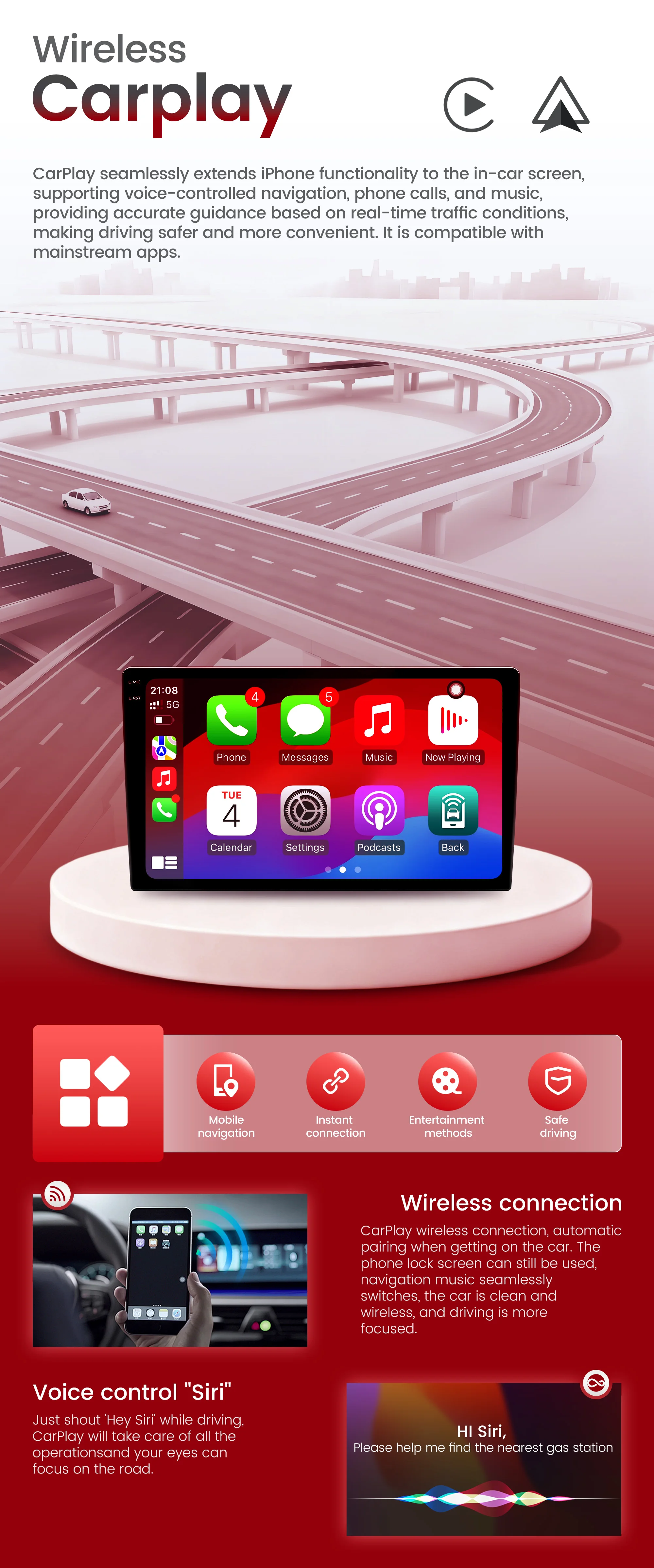 Special Features: wifi function,Support 4G Network,Built-in GPS,Mobile Phone,MP3 players,dsp,CarPlay,android auto,Reversing Input,Split Screen,Support steering wheel control