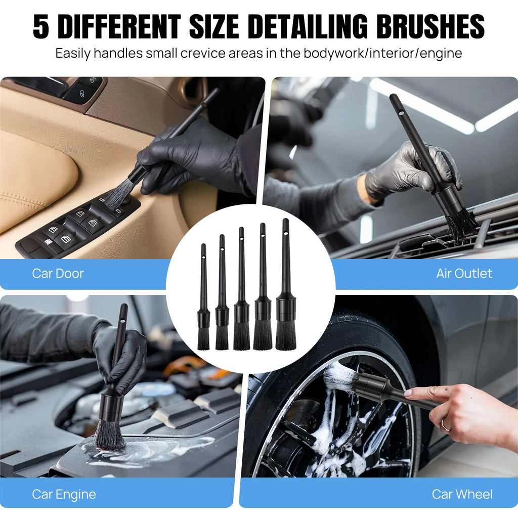 Car Detailing Brush Set, Kit, Brushes, Cleaning Windshield Tool, Professional Care kit - Wash for Interior Exterior Wheels