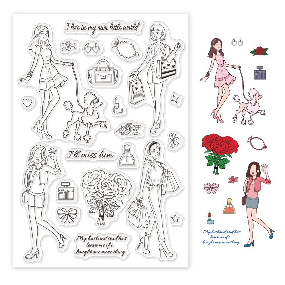 Fashion Girl Theme Series Clear Stamps Transparent Silicone Stamp Seal for DIY Scrapbooking Card Making Photo Album Decoration