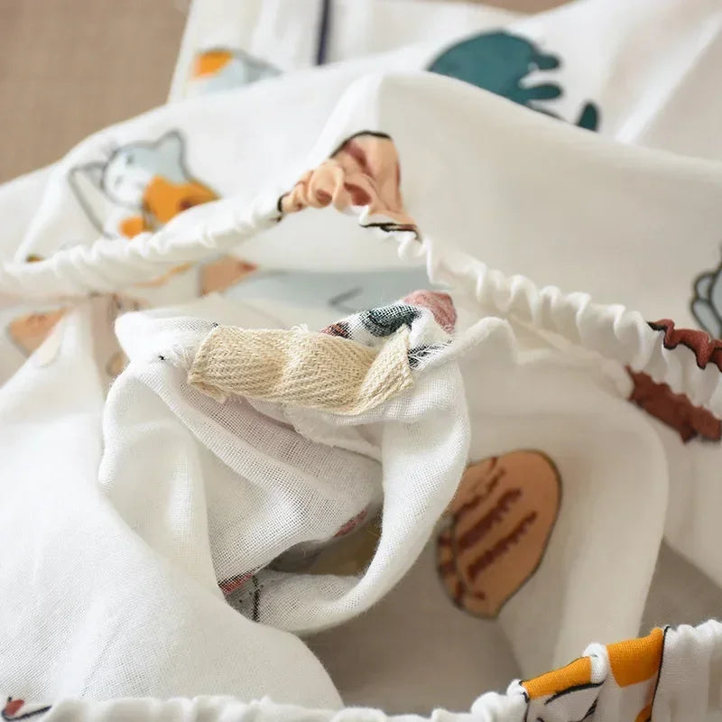 Japanese Summer Ladies New Pajamas Two-piece 100% Cotton Gauze Thin Short-sleeved Shorts Cute Cat Cartoon Home Service Set Women