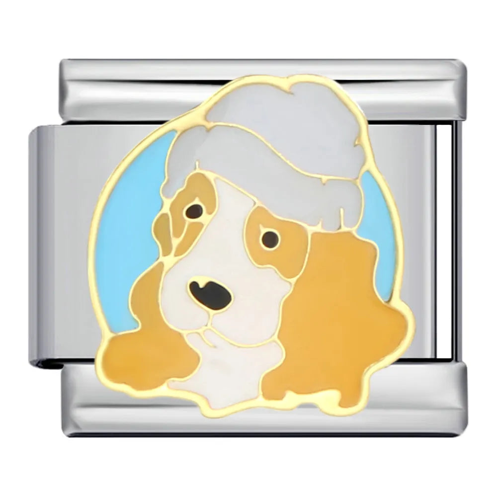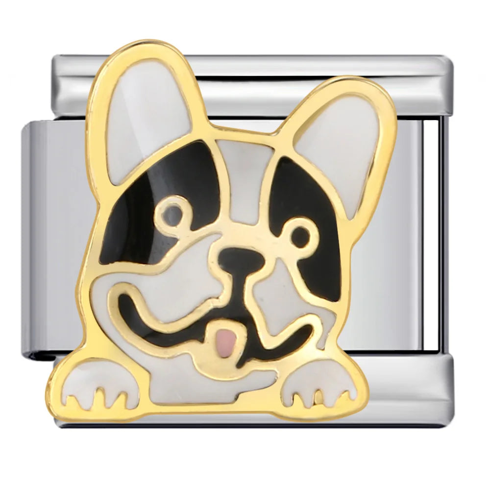 New Arrivals Cartoon Dog Animal Series Italian Charm Jewelry Link 9mm Stainless Steel Bracelet Fit Women Men DIY Making Beads
