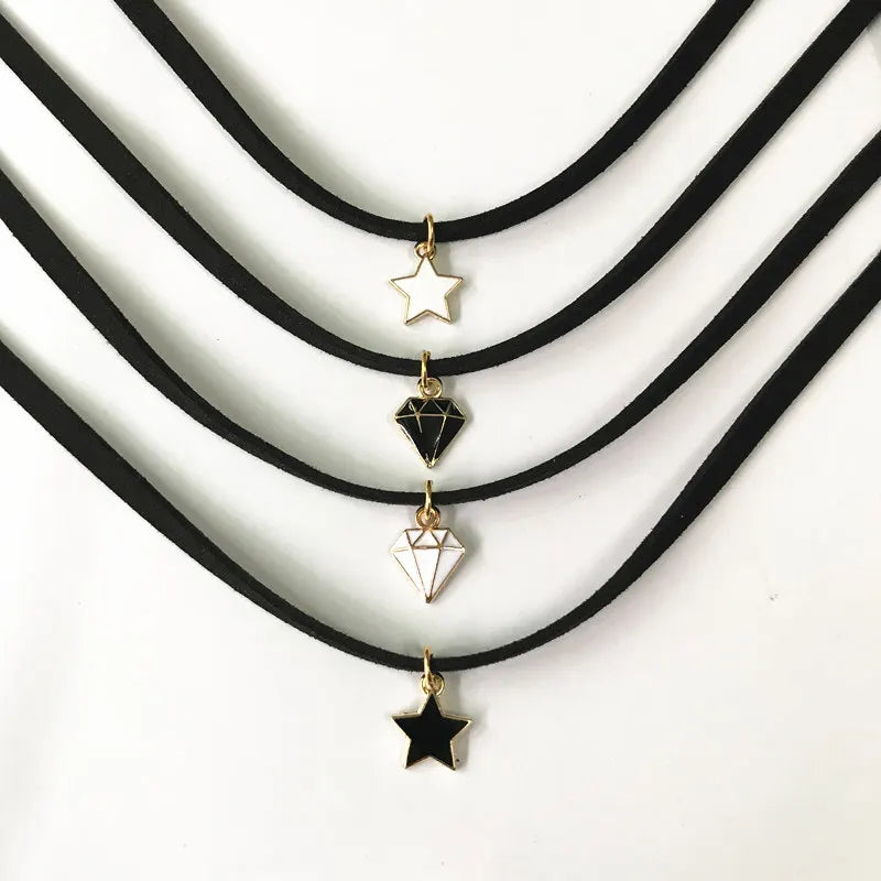 New Arrivals Fashion Collares Collier Black Velvet Leather Five-Pointed Star Pendants Chokers Necklaces For Women Jewelry