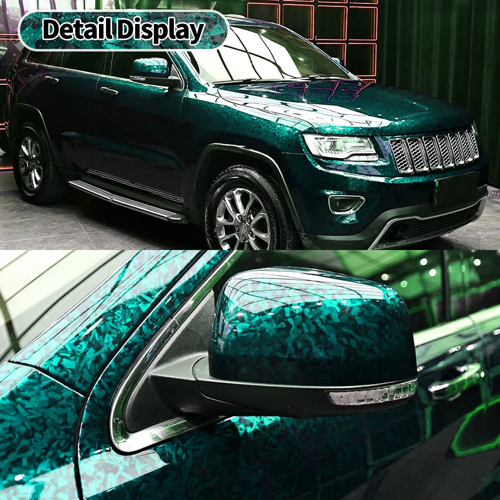 High Glossy PET Metallic Green Forged Carbon Fiber Vinyl Wrap Film Sefl-Adhesive For Motorcycle Scooter Car Body Decal Wrapping
