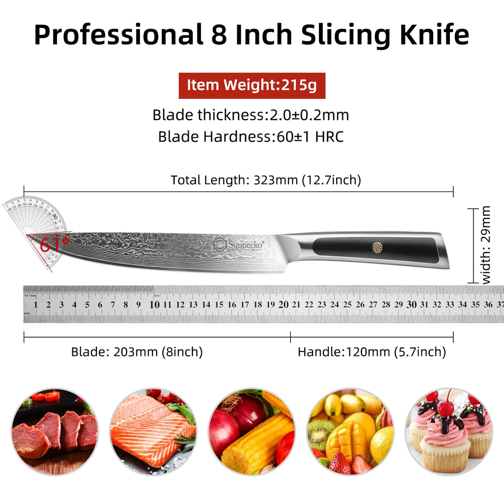 Sunnecko Damascus Steel Kitchen Knives High Carbon VG10 Core Blade Cut Japanese Chef's Knife Ultra Sharp Vegetable Meat Slicer