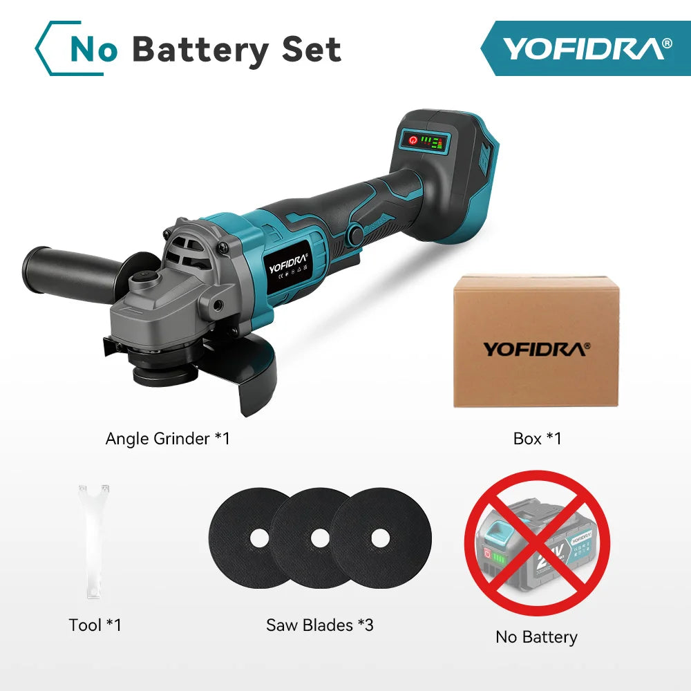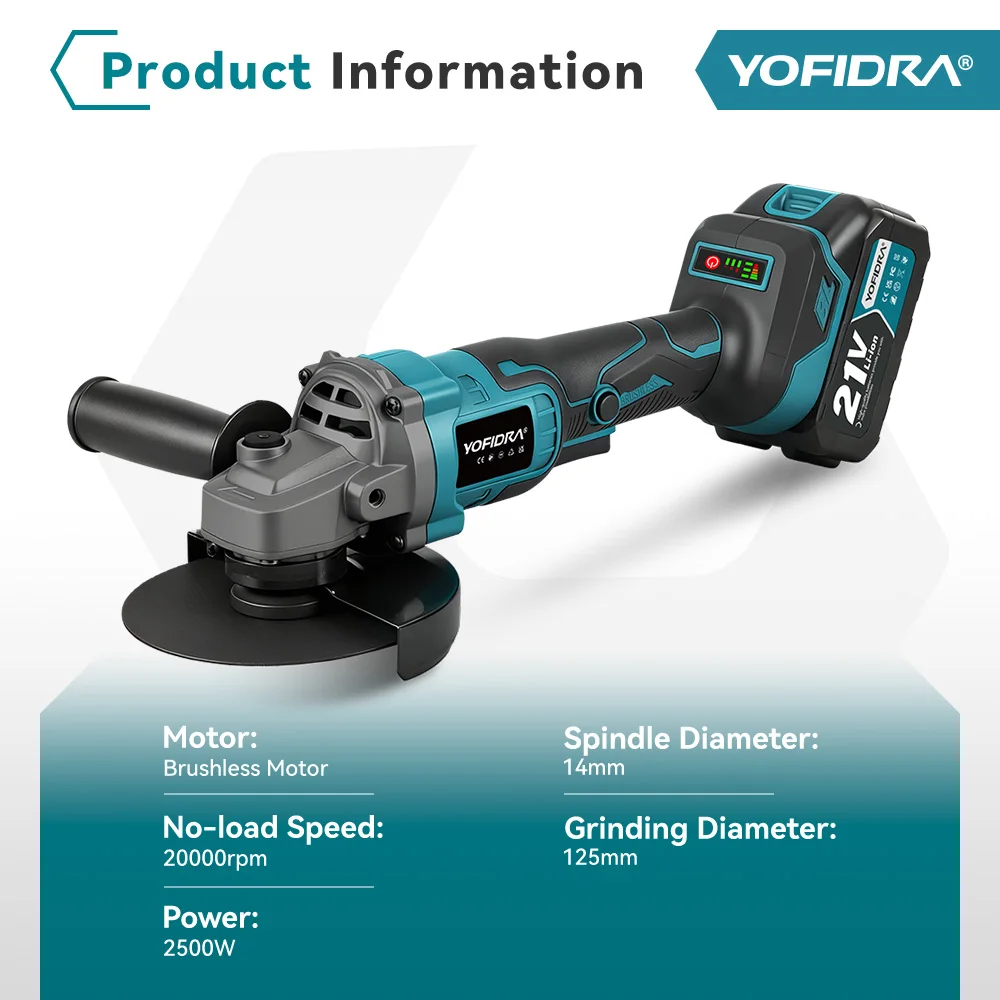 YOFIDRA 20000RPM 125mm Brushless Electric Angle Grinder Wood Metal Cutting Grinding Polishing Power Tool For Makita Battery Pin