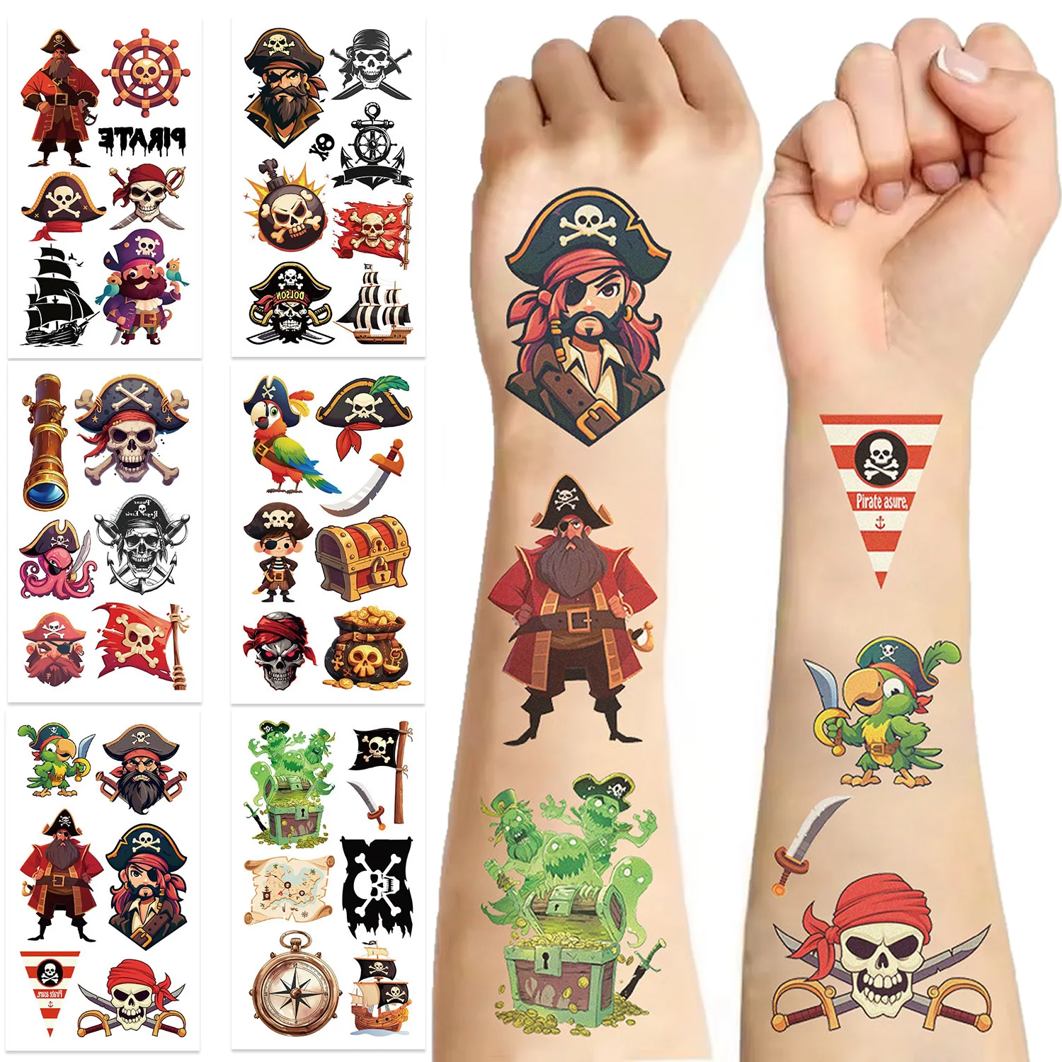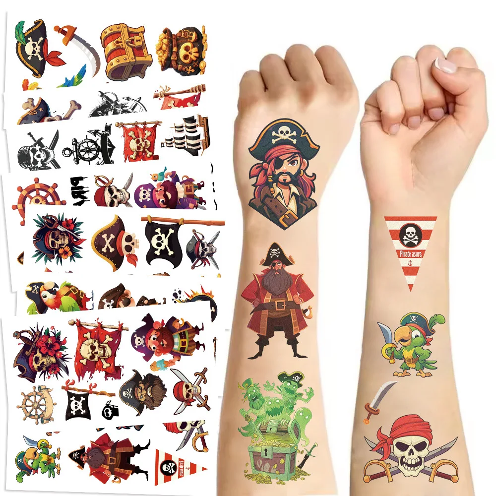 10pcs Cool Pirate Series Tattoo Stickers Cartoon Anime Childer Temporary Tattoos Sticker Pack Toys Funny Birthday Reward Gift