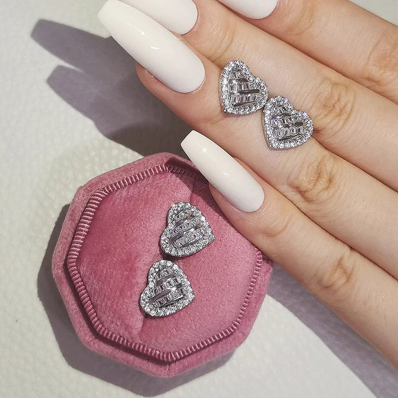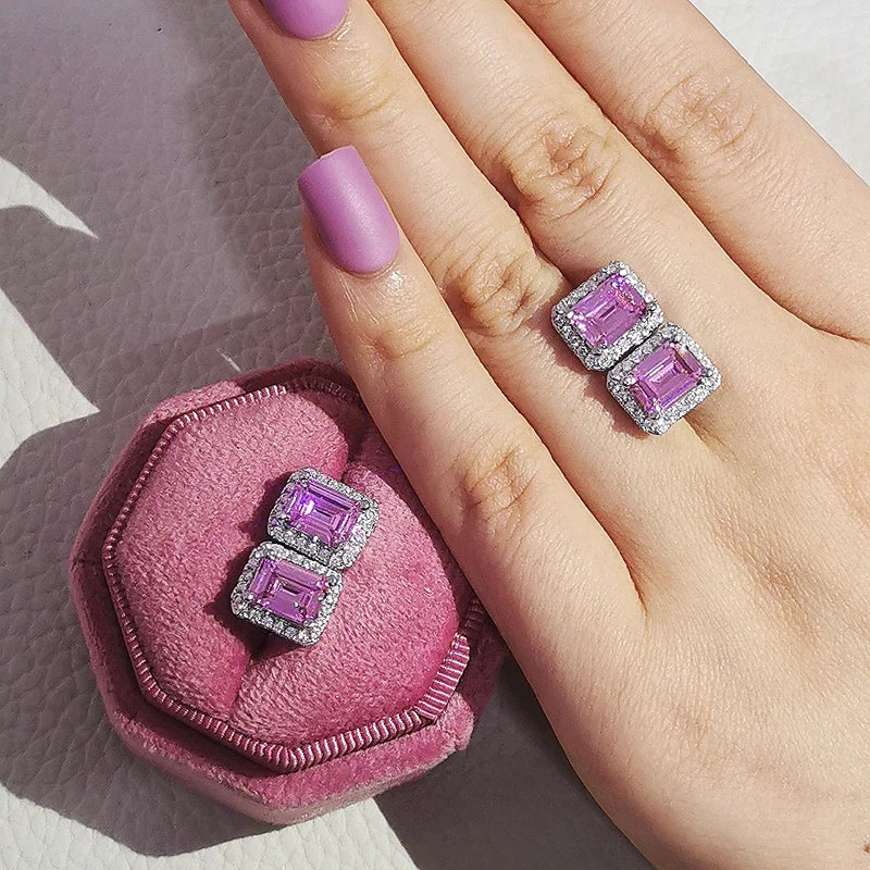 2023 New Arrivals Fashion Luxury silver color korean Zircon Stud Pink Earing Earrings For Women Girl Party Gift Jewelry Z7