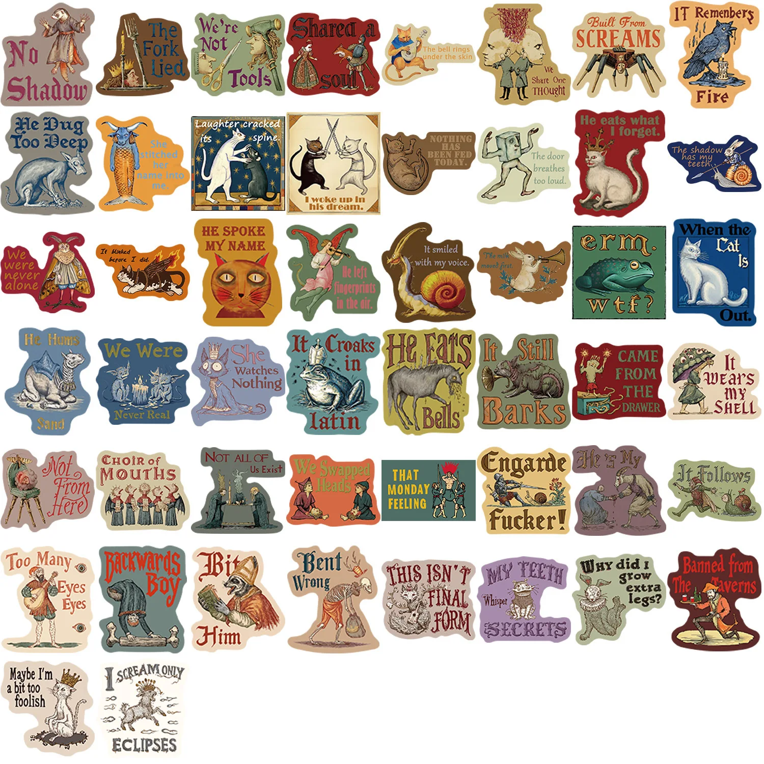 50pcs Medieval Weird Abstract Graffiti Waterproof Phone Laptop Luggage Guitar Laptop Stickers Kids Toys