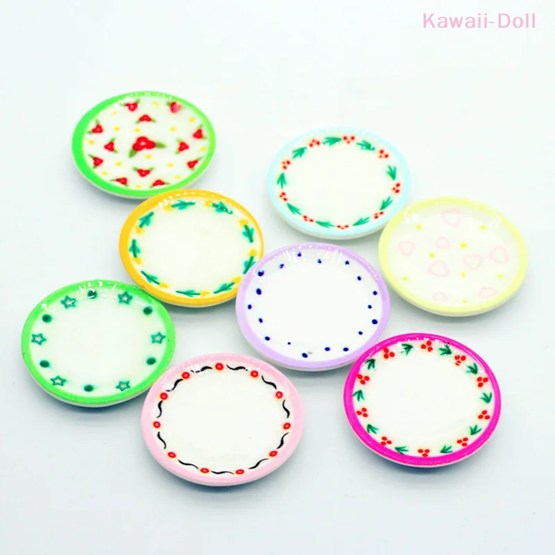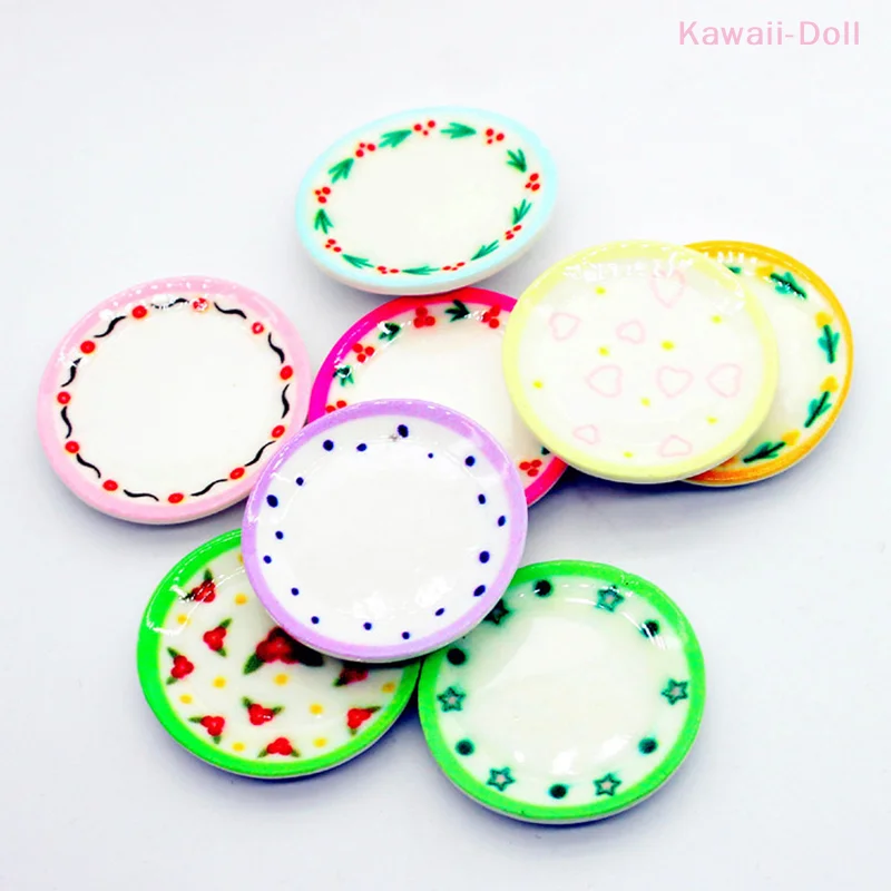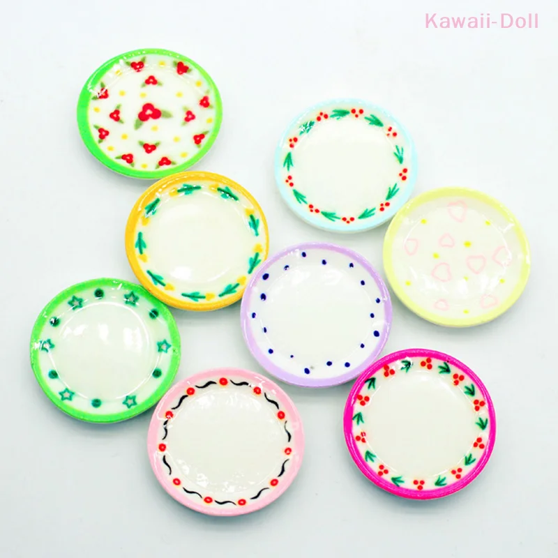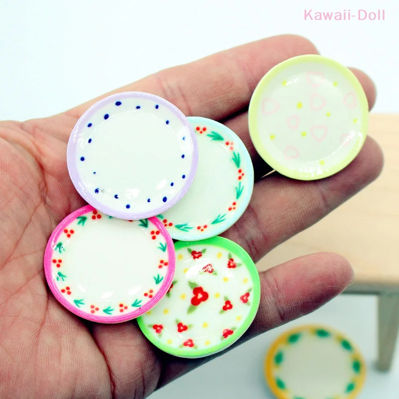 5Pcs Cute Cartoon Dish Plate Model Dollhouse Miniature Patterned Plate Props Toys For Dollhouse Kitchen Accessories