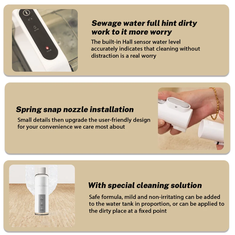 5. Upgraded dual water tank capacity for easy cleaning and efficient handling of large areas. 1300ml clean water tank/1100ml sewage tank