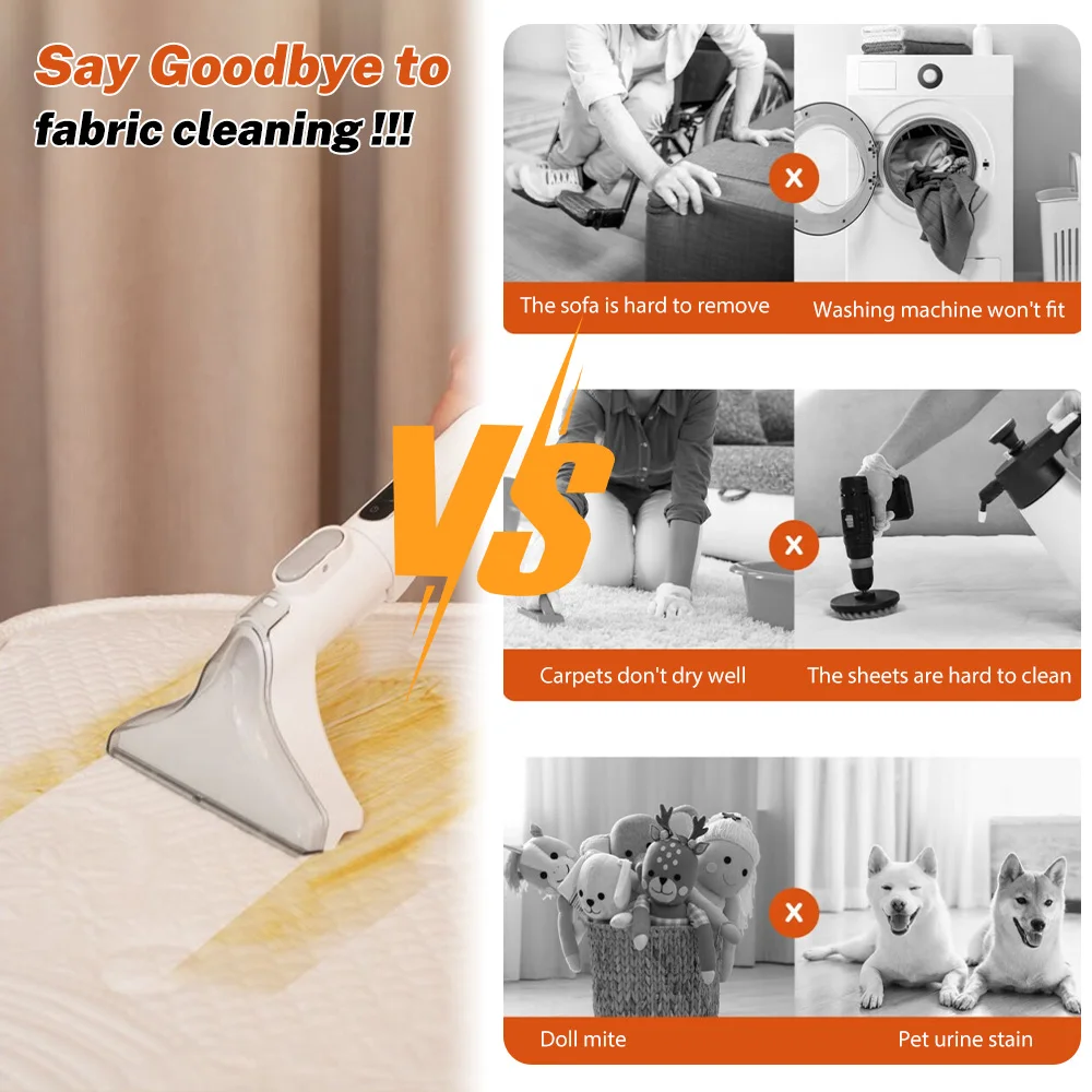 3. One machine with multiple functions, combining suction and washing, serving as both a vacuum cleaner and a cleaning machine for carpets, sofas, dolls, mattresses, pet beds, and other fabrics. All in one