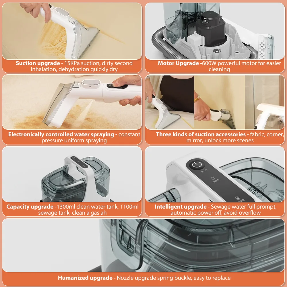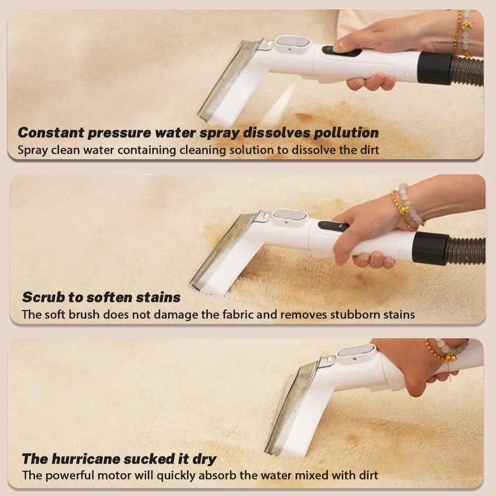 2. Spray brush suction for deep cleaning of fabric dirt with powerful 600W motor drive, deeply removing stubborn fabric stains