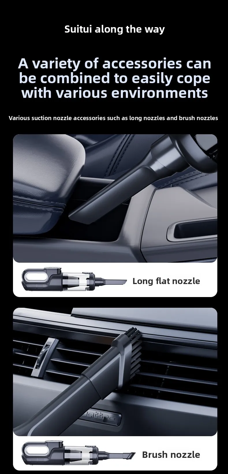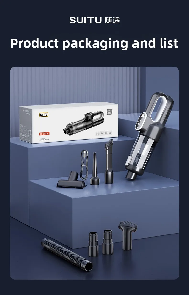 - MULTI-PURPOSE ACCESSORIES: Not just a vacuum, but also an air duster. The flat brush can accurately absorb small particles in the gaps, the hairbrush can clean pet hair on the table or sofa, the floor brush can clean floor debris, and the extension tube can help you clean hard-to-reach places such as corners, under the bed, and window gaps. Three large, medium, and small sizes of Inflatable nozzles can inflate balloons, swimming rings, and so on.