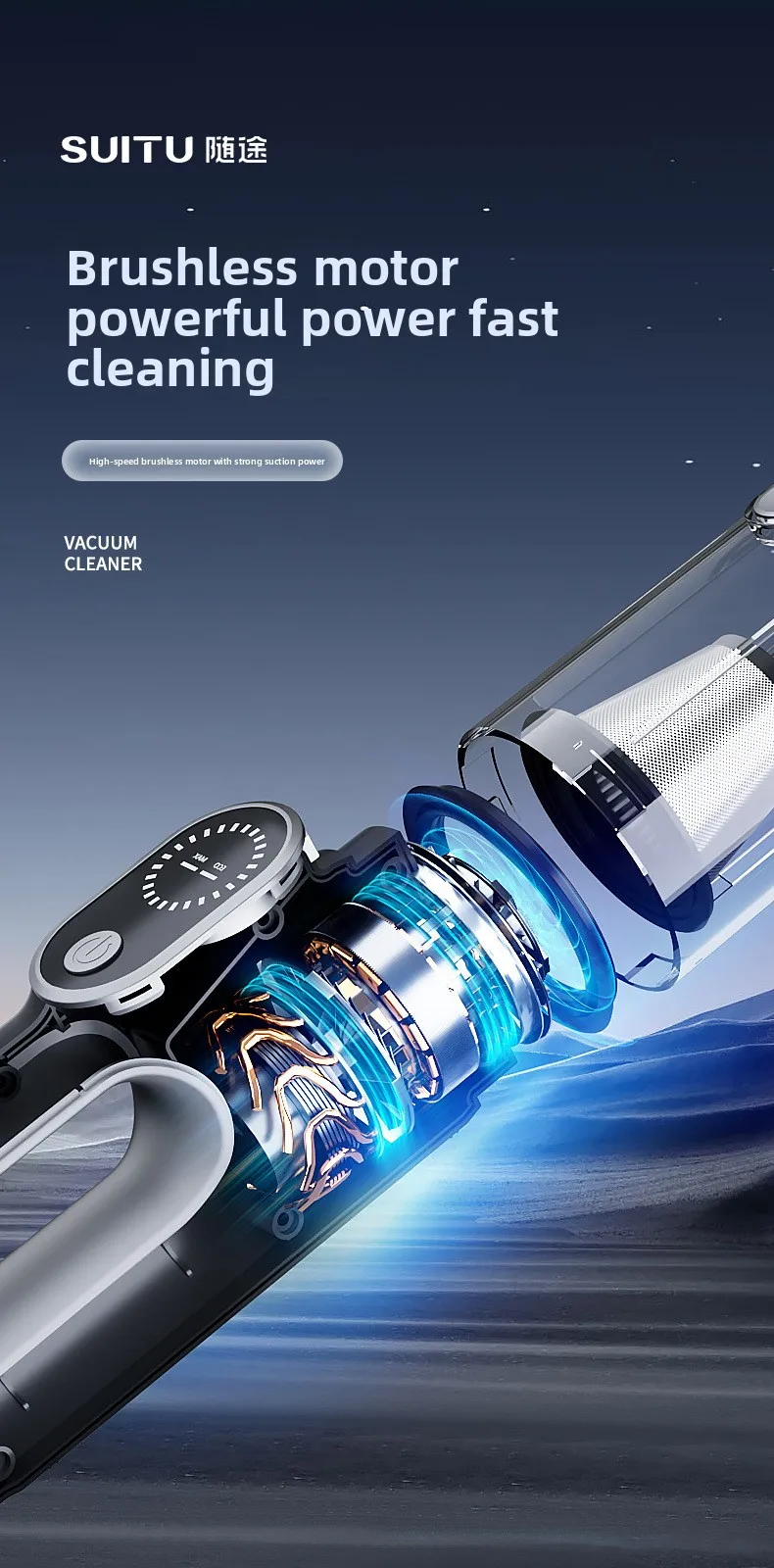 - 130W BRUSHLESS MOTOR: Equipped with an upgraded brushless motor, this handheld vacuum cordless rechargeable can reach an amazing speed of 115000RPM. Compared with ordinary brushed motors, its working efficiency is doubled, and the motor life is extended by 3 times. And the noise is only as low as ≤85dB during operation, which makes cleaning quieter and comfortable, suitable for homeand office environments.