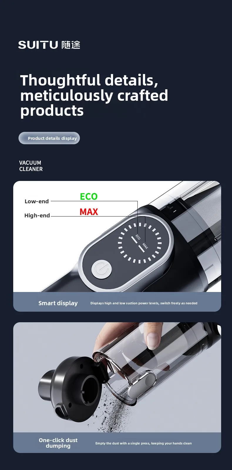 - EASY TO CLEAN & PORTABLE: With just a one-click dismantling, you can easily dump garbage and clean the handheld car vacuum. The HEPA filter can be washed and reused, ensuring efficient suction power while keeping dust and dirt outside to prevent blockage. It weighs only 1.4lb, but the large dust cup capacity is 0.26L. It is comfortable to hold and saves space, making it easy to carry and store.