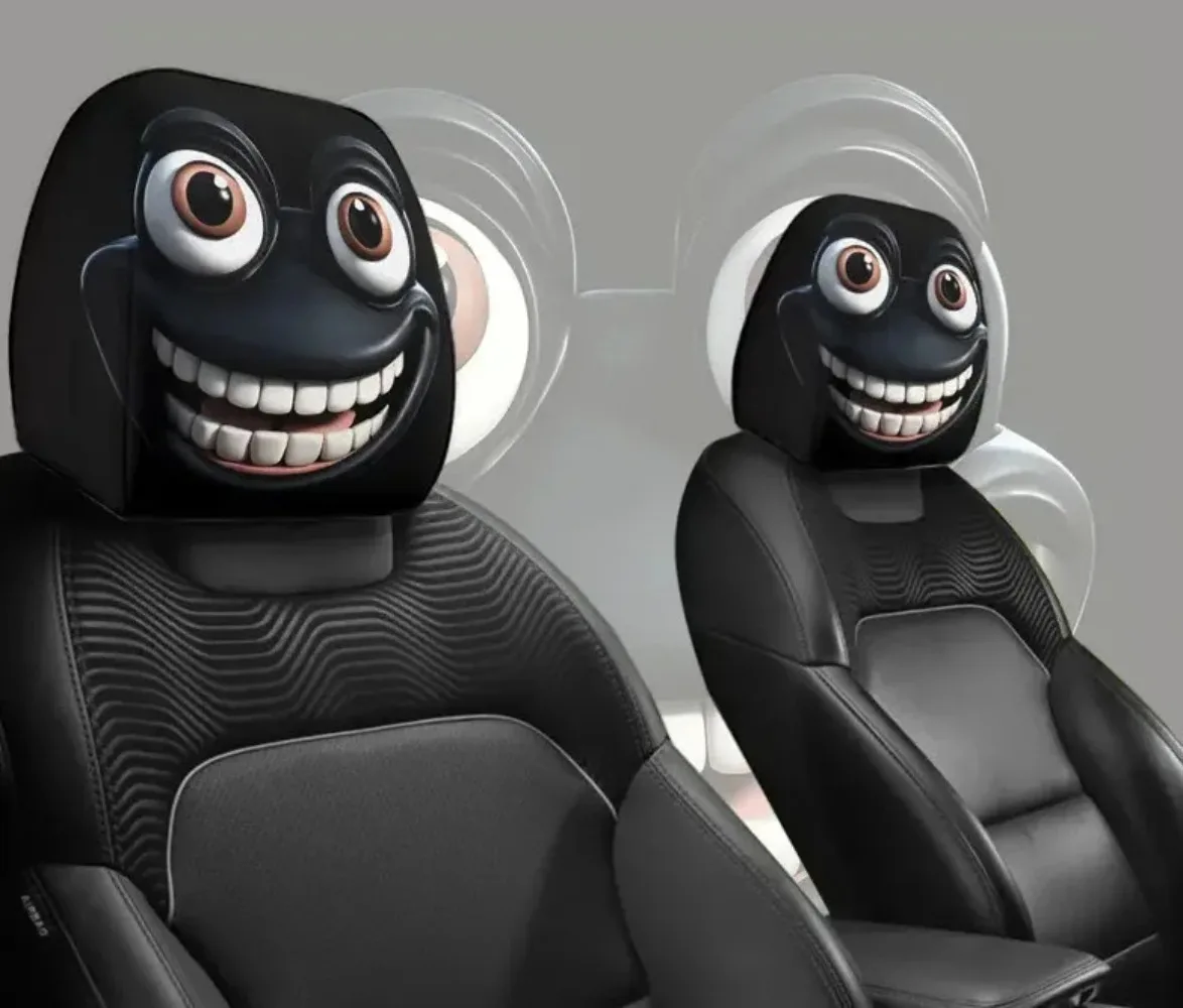 A two-piece set of exaggerated and fun car interior headrest covers for 2026, with funny face expressions and cool decorations