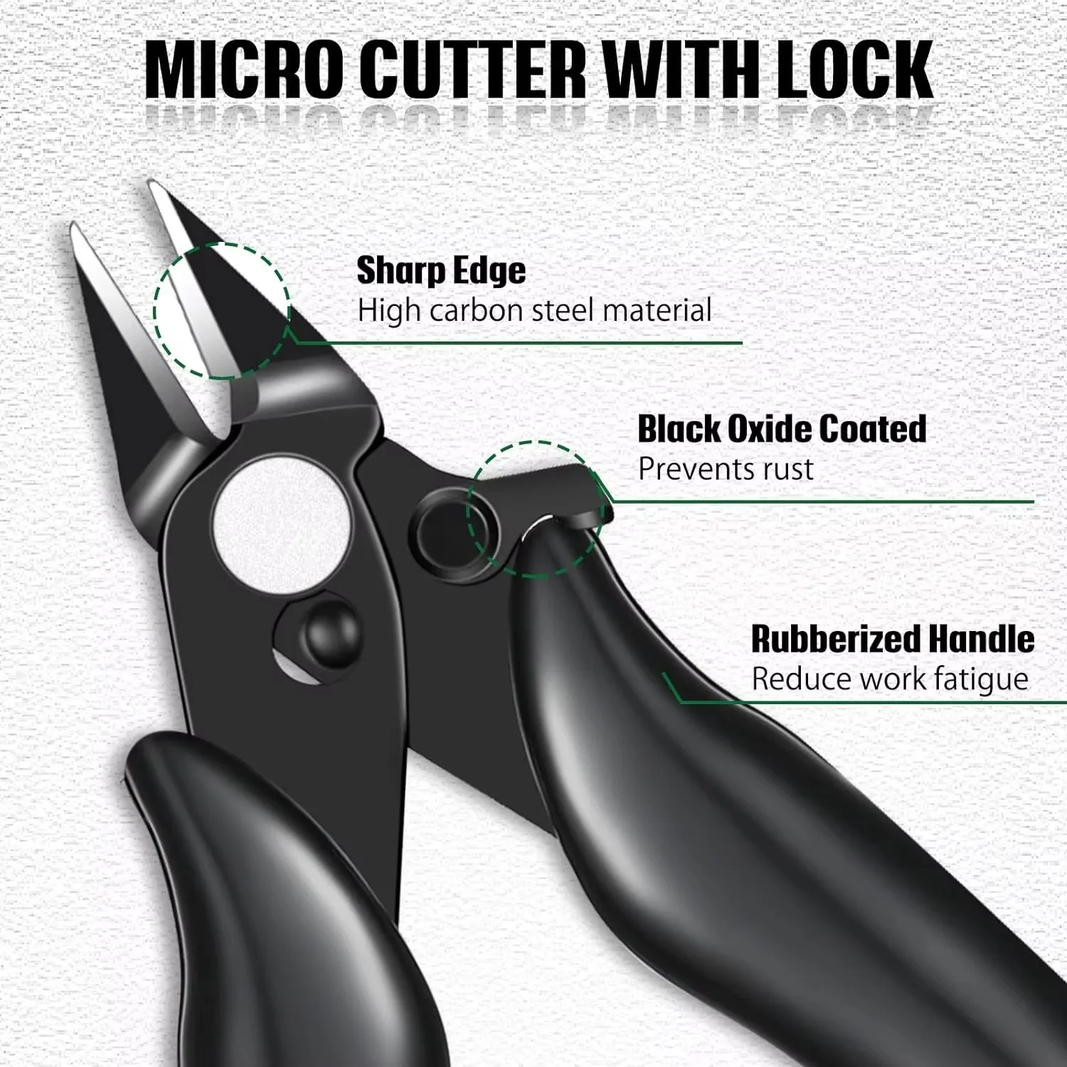 3.5 INCH WIRE CUTTER: Made of high-quality chrome vanadium steel to improve durability.Bent handle design,non-slip safety,smart lock design,light weight,thin profile, easy operation, make the grip operation feel comfortable, easy to use.