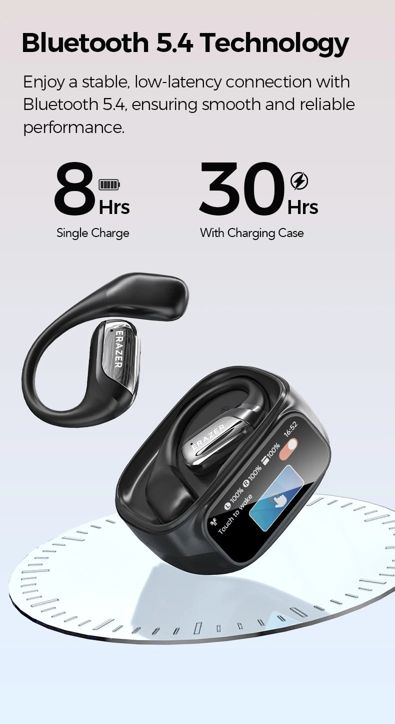 ERAZER XF35 Bluetooth V5.4 Headphones Wireless Earphone Full-ColorTouchScreen OWS Earbuds LED Digital Display Earphones With Mic