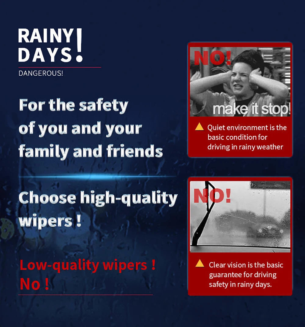 Composition: 2Pcs (Passenger Side and Driver Side)+1PC rear wiper