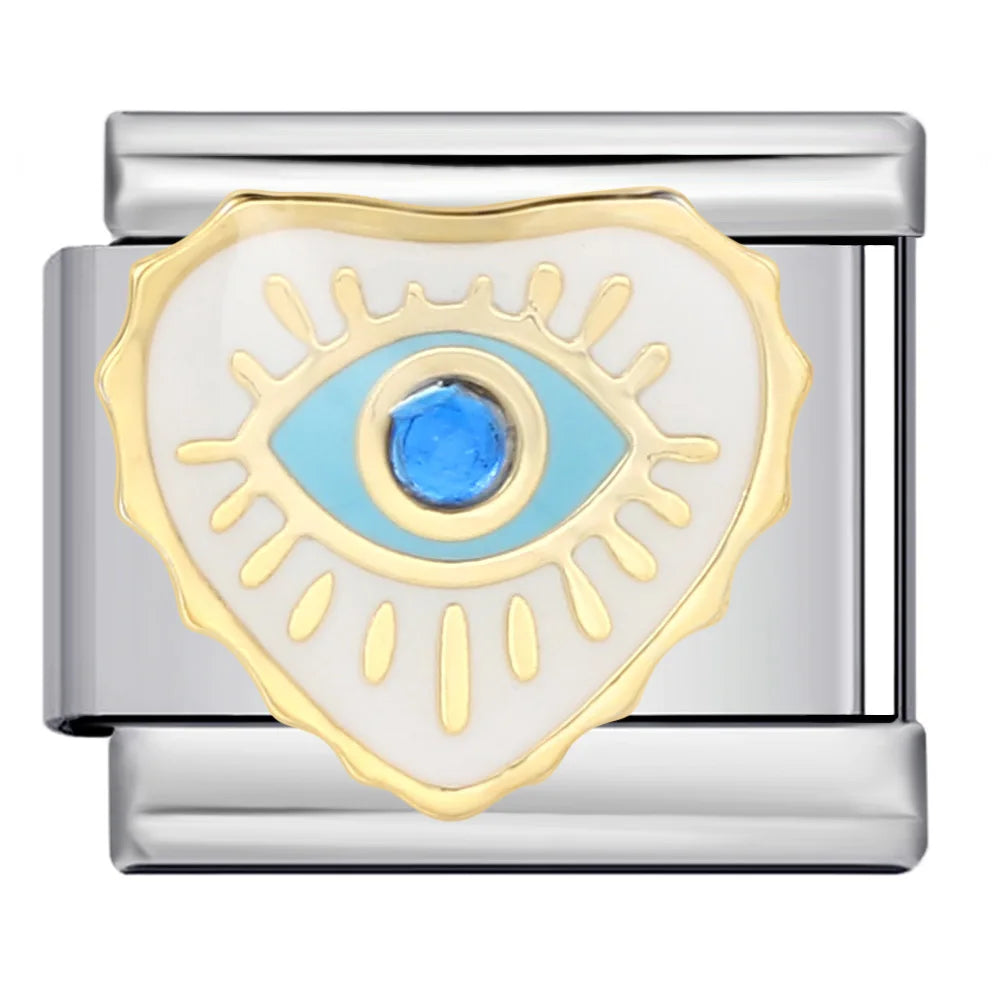 New Arrivals Y2K Classic Blue Loving Heart Demon's Eye Starry Sky Italian Link Fit 9mm Stainless Steel Charm Bracelet DIY Making