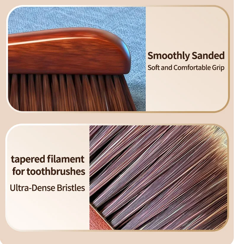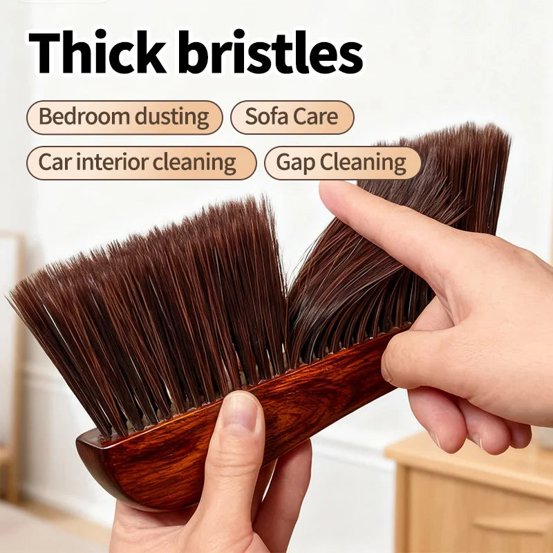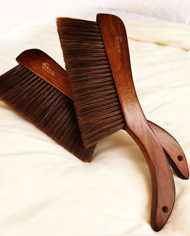 Sandalwood Handle Soft Bristles Dust Brush Anti Static Sweeping Brush For Bed Sofa Pet Hair Removal Gentle Home Cleaning Tool