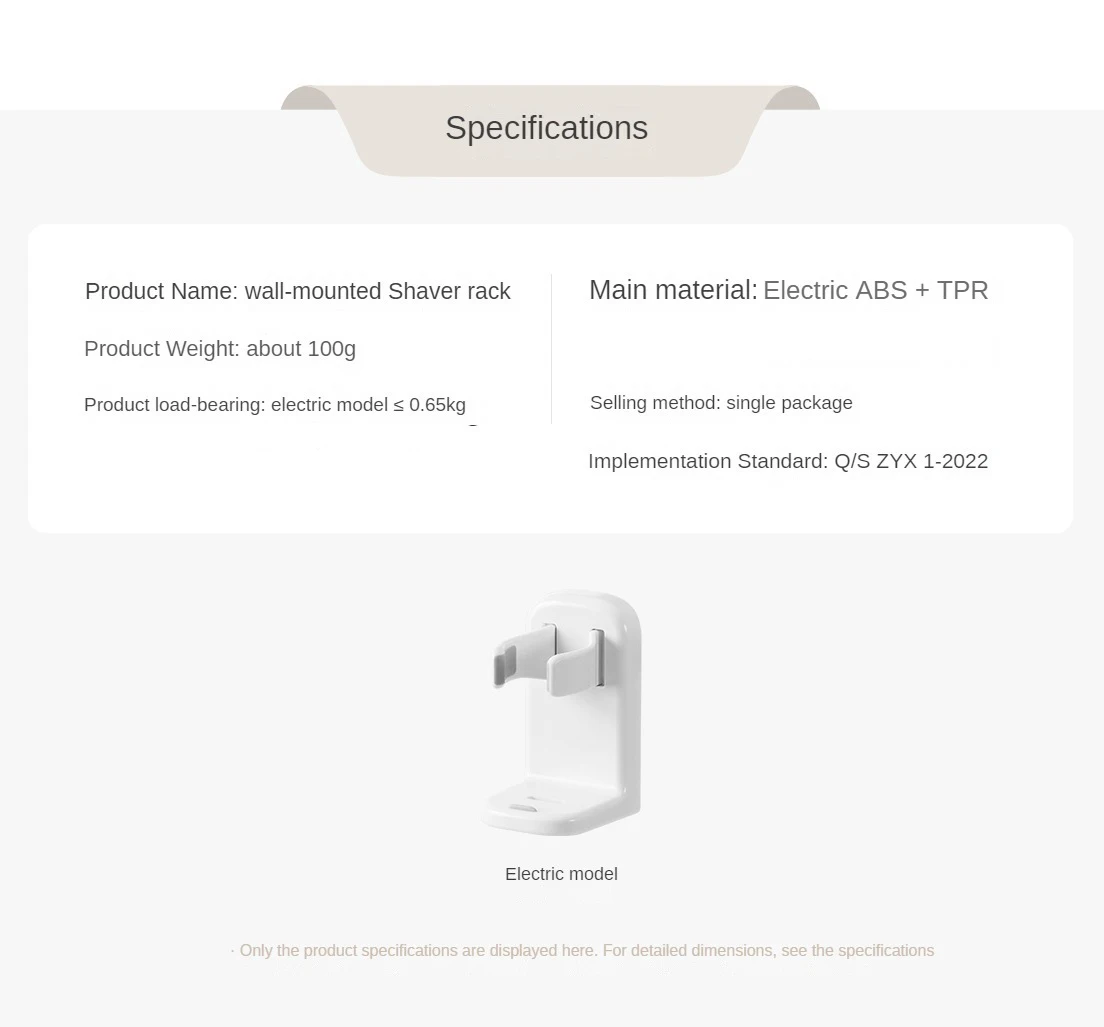 Razor holder made of high quality ABS, not easy to break, durable, lightweight, suitable for placing electric razor or battery razor in the bathroom.