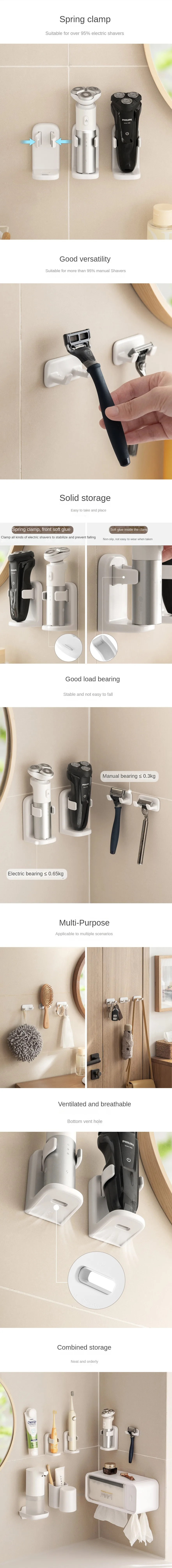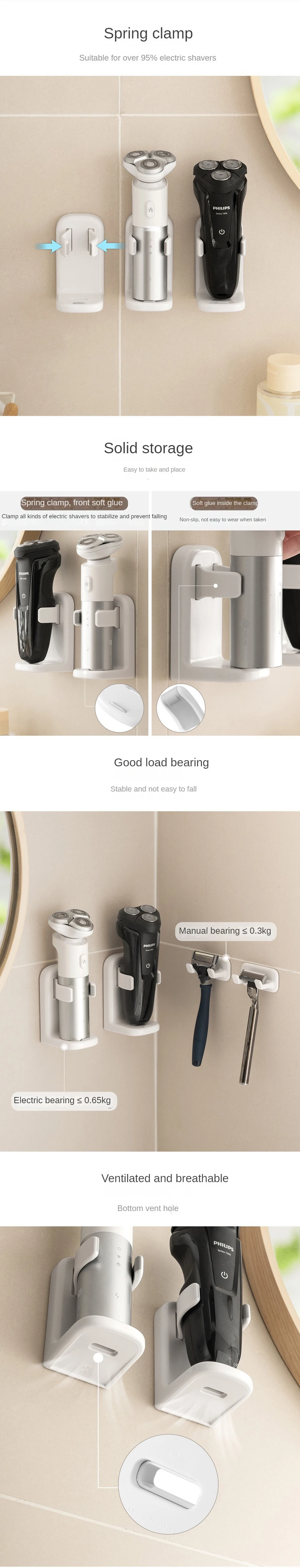 White Electric Razor Holder Non-punching Spring Clip Storage Rack Strong Load-bearing Anti-falling